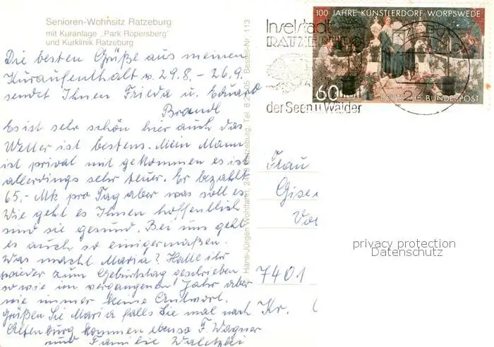 Ratzeburg Senioren Wohnsitz Ratzeburg mit Kuranlage Park Roepersberg und Kurklinik Ratzeburg Ratzeburg postalisch gelaufen nach 1965 Erhaltung siehe scans [WerneD78] WernPID7