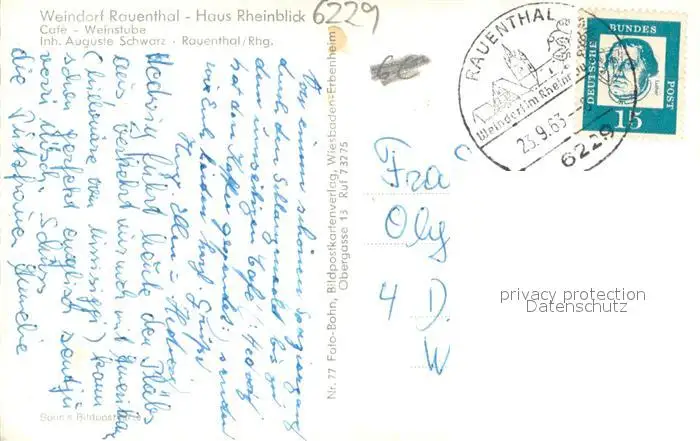Rauenthal Haus Rheinblick Cafe Weinstube Terrasse Rauenthal postalisch gelaufen 1963 Erhaltung siehe scans [WerneD78] WernPID7