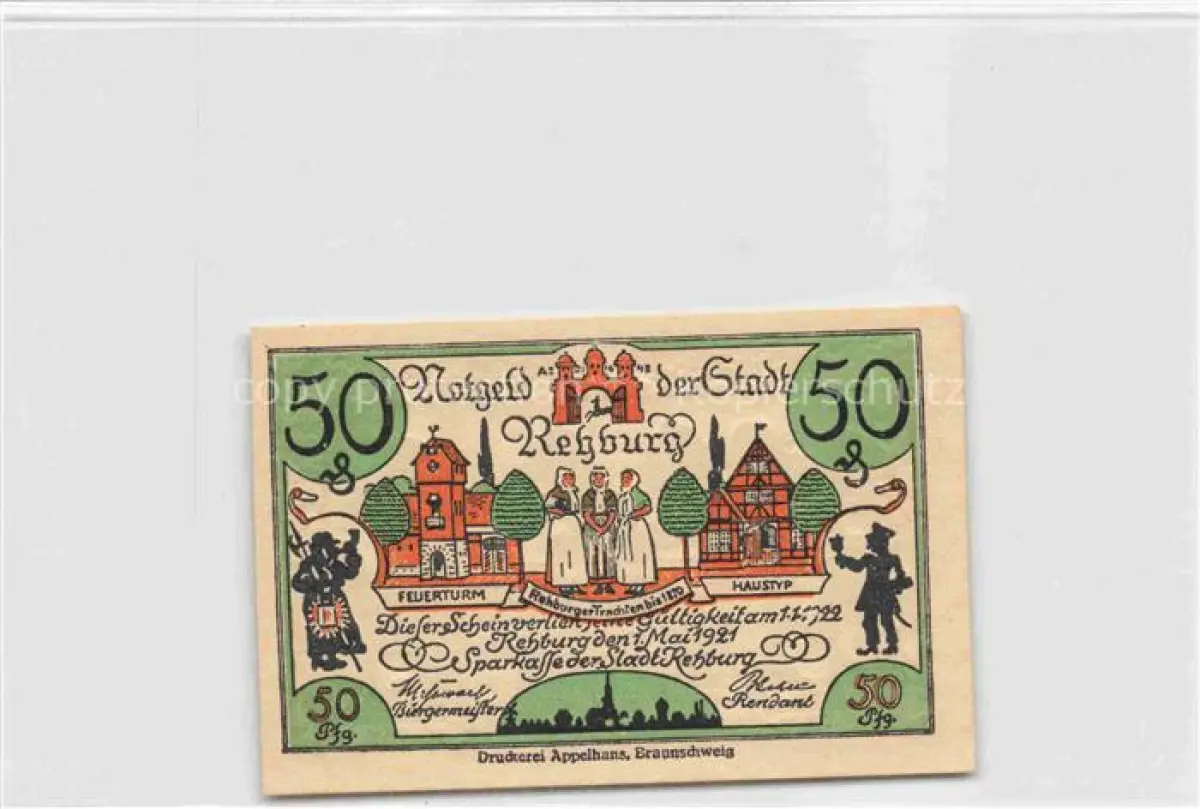 Rehburg Bad 50 Feuerturm Haustyp Trachten Pfg. postalisch nicht gelaufen Notgeldschein (keine Postkarte) Erhaltung siehe scans [IrynaD87]