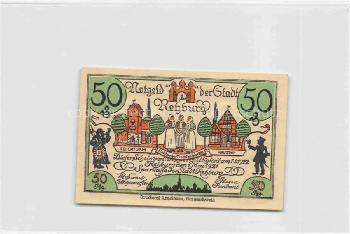 Rehburg Bad Feuerturm Haustyp Trachten postalisch nicht gelaufen Notgeldschein (keine Postkarte) Erhaltung siehe scans [IrynaD87]