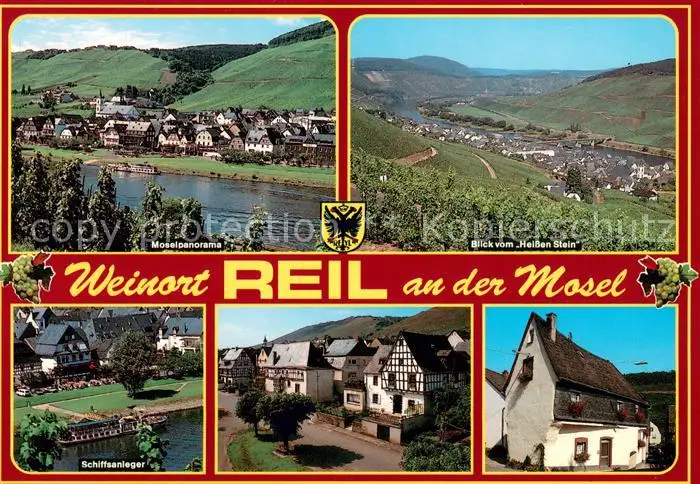 AK / Ansichtskarte Reil_Mosel Moselpanorama Blick vom Heissen Stein Schiffsanleger Fachwerkhaus Reil_Mosel