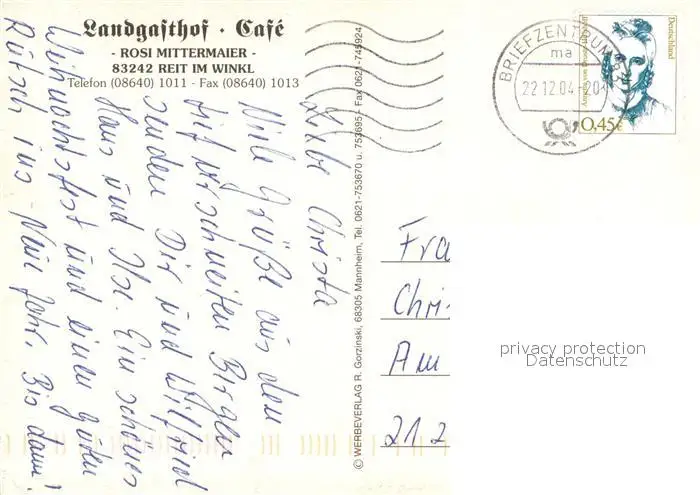 Reit_Winkl Landgasthof Cafe Rosi Mittermaier Reit_Winkl postalisch gelaufen 2004 Erhaltung siehe scans [FriedD77] Frierer