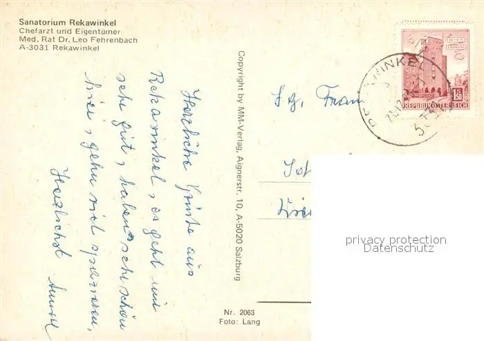 Rekawinkel Sanatorium Rekawinkel postalisch gelaufen 1973 Erhaltung siehe scans [LiesaD40] LiesID40
