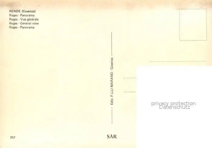 Rende_Cosenza Roges Panorama postalisch nicht gelaufen nach 1965 Erhaltung siehe scans [FriedD77] Frierer