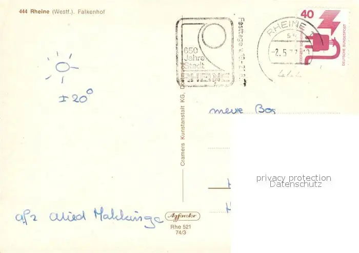 Rheine Falkenhof Rheine postalisch gelaufen 1971 Erhaltung siehe scans [KathaD81] Kathoren