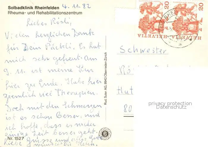 Rheinfelden_AG Solbad Rheinfelden Rehazentrum Hallenbad Rheinfelden AG postalisch gelaufen 1982 Erhaltung siehe scans [WerneD78] WernPID7