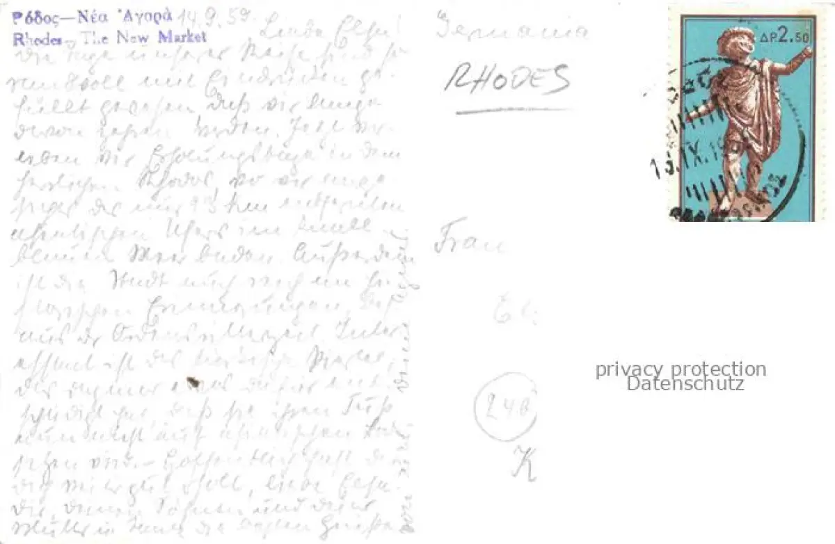 old postcard Rhodes RHODOS Greece The New Market postalisch gelaufen Erhaltung siehe scans [SanaeD93]