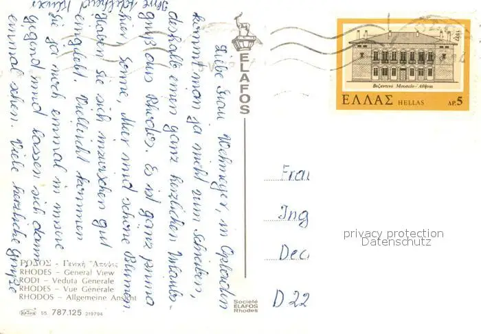 Rhodos_Rhodes_aegaeis Rhodos_Rhodes_aegaeis postalisch gelaufen nach 1965 Erhaltung siehe scans [NatalD47] NataID47