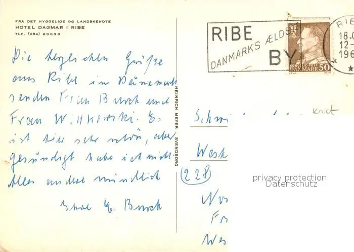 Ribe Hotel Dagmar Gastraeume Ribe postalisch gelaufen nach 1965 Erhaltung siehe scans [WerneD78] WernPID7