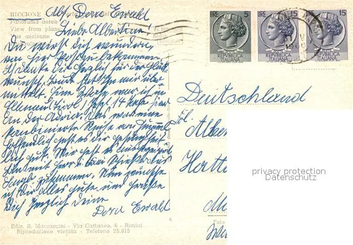 Riccione Fliegeraufnahme Riccione postalisch gelaufen 1960 Erhaltung siehe scans [WerneD78] WernPID7