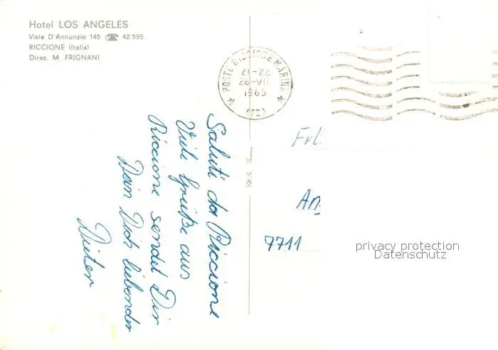 Riccione Hotel Los Angeles Riccione postalisch gelaufen 1965 Erhaltung siehe scans [WerneD78] WernPID7