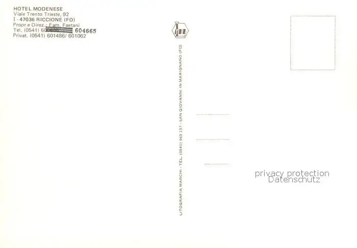 Riccione Hotel Modenese Riccione postalisch nicht gelaufen nach 1965 Erhaltung siehe scans [LiesaD40] LiesID40