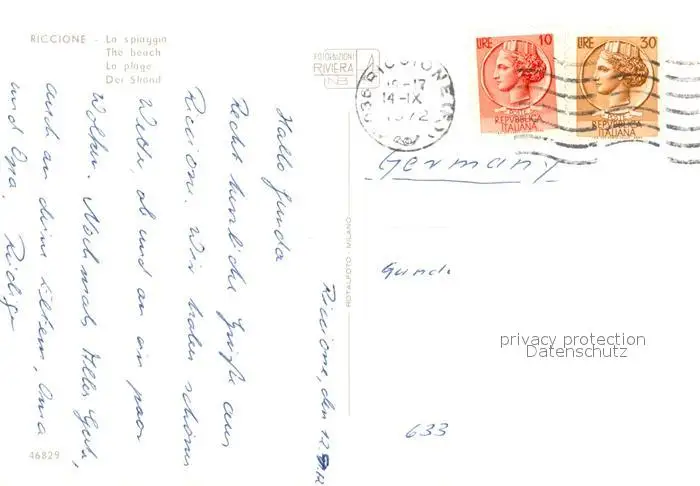 Riccione La Spiaggio Riccione postalisch gelaufen 1972 Erhaltung siehe scans [LiesaD40] LiesID40