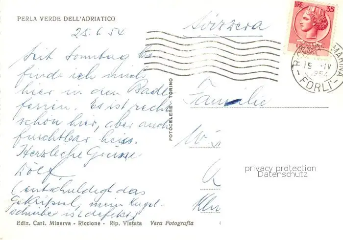 Riccione Strandpromenade Riccione postalisch gelaufen 1954 Erhaltung siehe scans [KathaD81] Kathoren