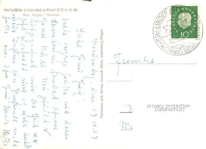 Ried_Lindenberg_Allgaeu Heilstaette Ried_Lindenberg_Allgaeu postalisch gelaufen 1959 Erhaltung siehe scans [PaolaD17] PaolPID1