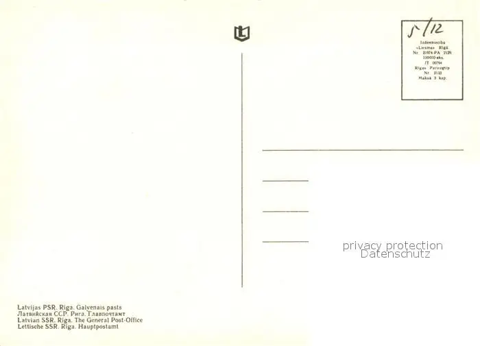 Riga_Lettland Hauptpostamt Riga_Lettland postalisch nicht gelaufen nach 1965 Erhaltung siehe scans [WerneD78] WernPID7