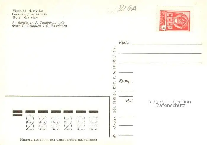 Riga_Lettland Hotel Latvia Restaurant Riga_Lettland postalisch nicht gelaufen 1981 Erhaltung siehe scans [FriedD77] Frierer