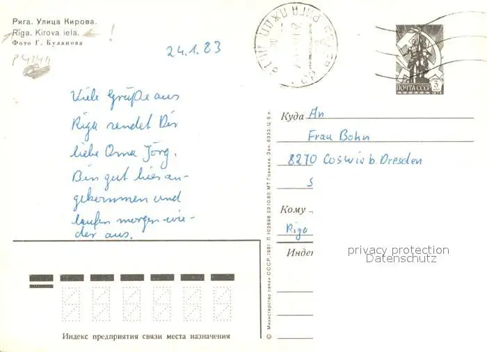 Riga_Lettland Kirovstrasse Riga_Lettland postalisch gelaufen nach 1965 Erhaltung siehe scans [Darjalle] Darjolle