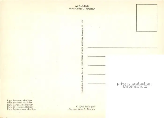 Riga_Lettland Restaurant Baltija Riga_Lettland postalisch nicht gelaufen nach 1965 Erhaltung siehe scans [LiesaD40] LiesID40