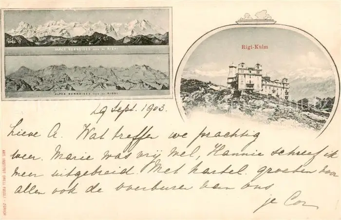 Rigi_Kulm Hotel Rigi Kulm Berner Alpen Rigi_Kulm postalisch gelaufen 1903 Erhaltung siehe scans [FriedD77] Frierer