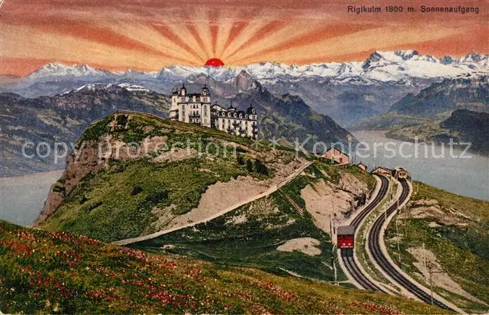 AK / Ansichtskarte Rigi_Kulm bei Sonnenaufgang Rigibahn Rigi_Kulm
