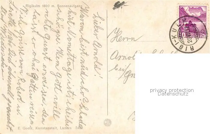 Rigi_Kulm bei Sonnenaufgang Rigibahn Rigi_Kulm postalisch gelaufen 1937 Erhaltung siehe scans [LiesaD40] LiesID40