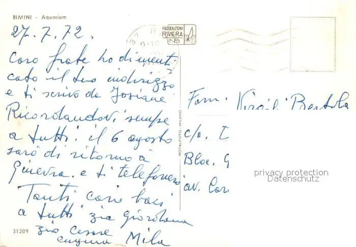 Rimini Aquarium Delphin Show Rimini postalisch gelaufen 1972 Erhaltung siehe scans [FriedD77] Frierer