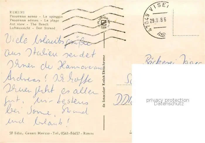 Rimini_IT Fliegeraufnahme Strand-Ansicht postalisch gelaufen 1986 Erhaltung siehe scans [LiesaD40] LiesID40