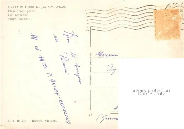 Rimini_IT Fliegeraufnahme Strand-Panorama postalisch gelaufen 1921-1965 Erhaltung siehe scans [LiesaD40] LiesID40