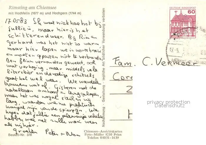 Rimsting mit Hochfelln und Hochgern Rimsting postalisch gelaufen nach 1965 Erhaltung siehe scans [WerneD78] WernPID7