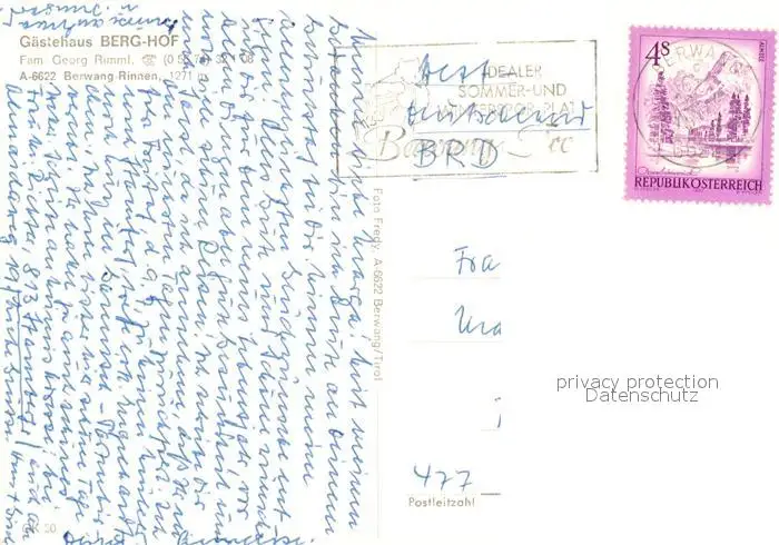 Rinnen_Tirol Gaestehaus Berg-Hof Rinnen Tirol postalisch gelaufen nach 1965 Erhaltung siehe scans [NatalD47] NataID47