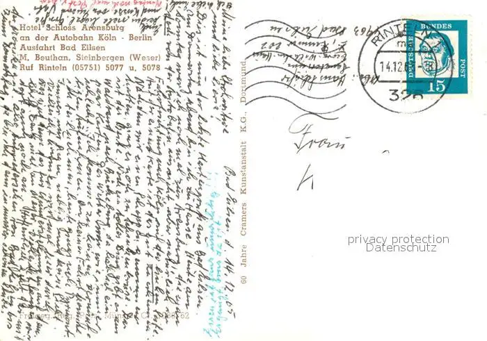 Rinteln Hotel Schloss Arensburg Rinteln postalisch gelaufen 1965 Erhaltung siehe scans [WerneD78] WernPID7