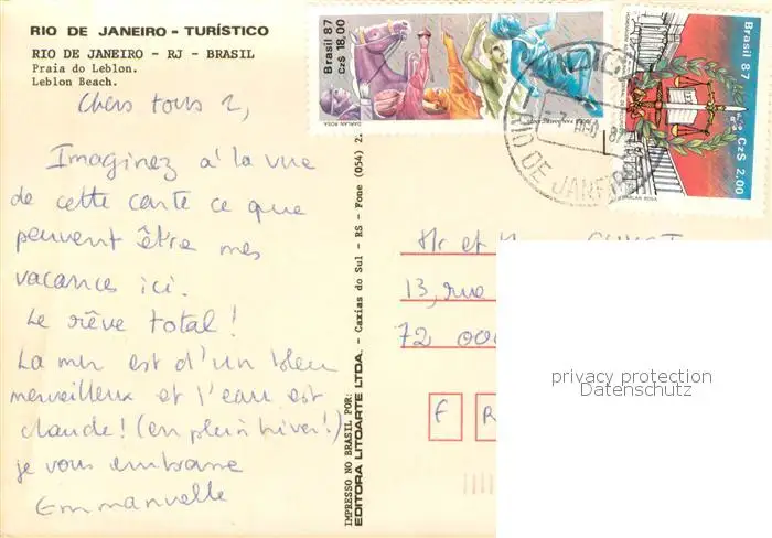 Rio_de_Janeiro Leblon Beach Rio_de_Janeiro postalisch gelaufen 1987 Erhaltung siehe scans [FriedD77] Frierer