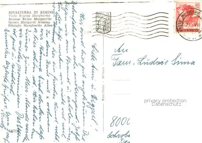 Rivazzurra Viale Regina Margherita Rivazzurra postalisch gelaufen 1965 Erhaltung siehe scans [LiesaD40] LiesID40
