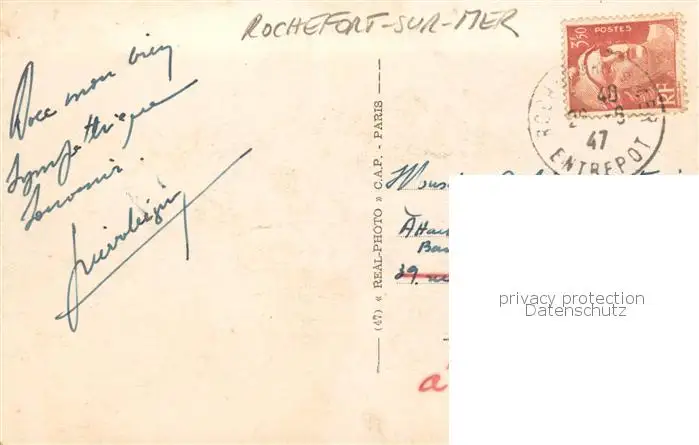 Rochefort_sur_Mer_17_Charente-Maritime La Square de la Poste postalisch gelaufen 1947 Erhaltung siehe scans [FriedD77] Frierer
