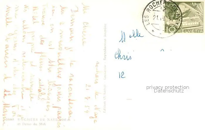 Rochers_de_Naye Kategorie Alte Ansichtskarten Postkarten kp43325 Rochers_de_Naye et Dents du Midi Rochers_de_Naye postalisch gelaufen 1959 Erhaltung siehe scans [LiesaD40]