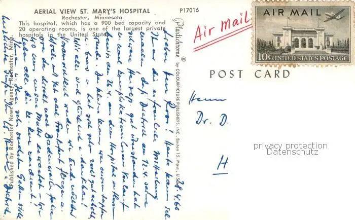 Rochester_Minnesota Aerial View St Marys Hospital postalisch gelaufen 1968 Erhaltung siehe scans [FriedD77] Frierer