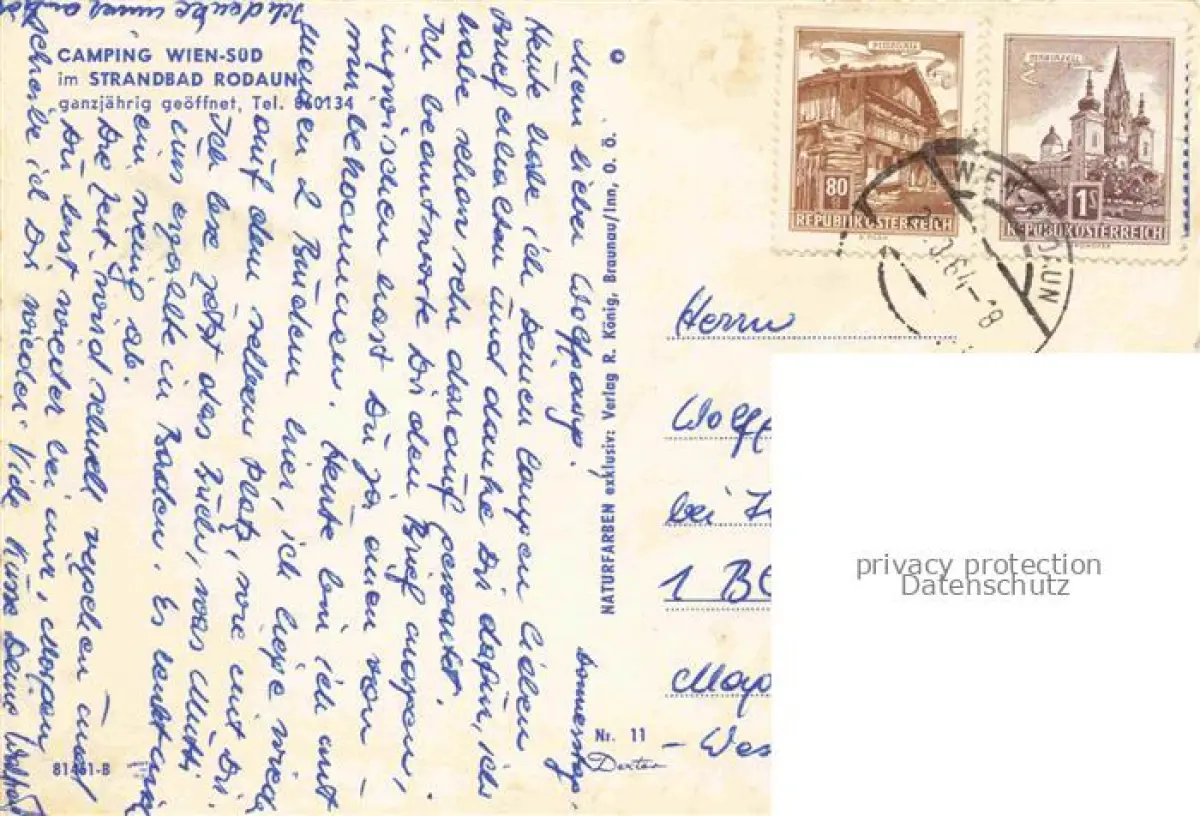 alte Postkarte Rodaun WIEN AT Camping- und Strandbad Freibad postalisch gelaufen Erhaltung siehe scans [FriedD77]