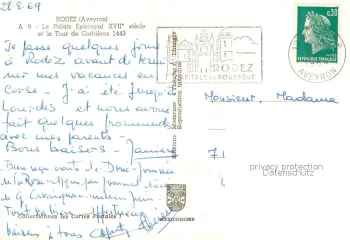 Rodez Le Palais Episcopalet la Tour de Corbieres Rodez postalisch gelaufen 1969 Erhaltung siehe scans [WerneD78] WernPID7