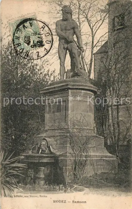 Rodez Monument Samson Statue Rodez postalisch gelaufen 1907 Erhaltung siehe scans [FriedD77] Frierer