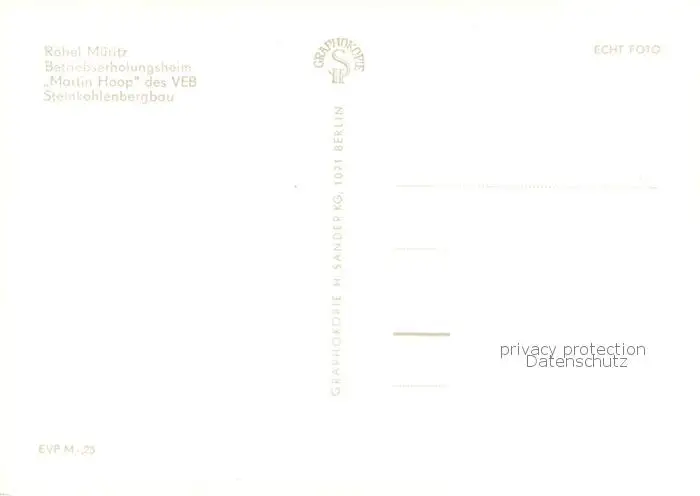 Roebel_Mueritz Betriebserholungsheim Martin Hoop des VEB Steinkohlenbergbau Roebel Mueritz postalisch nicht gelaufen 1970 Erhaltung siehe scans [FriedD77] Frierer