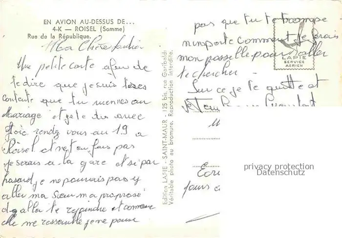 14063007 Roisel Peronne 80 Somme Rue de la République vue aérienne postalisch nicht gelaufen Fliegeraufnahme Erhaltung siehe scans [FriedD77] Fliegeraufnahme Frie Katcode 11170080480677