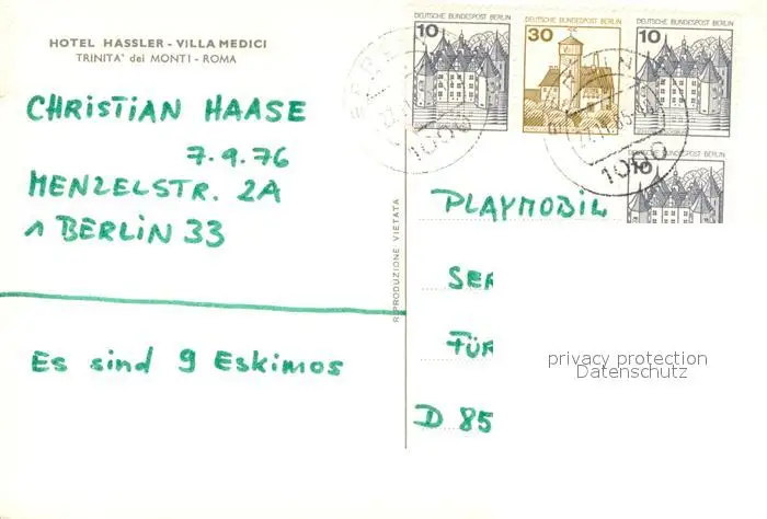 Roma_Rom Hotel Hassler Villa Medici Roma_Rom postalisch gelaufen 1985 Erhaltung siehe scans [WerneD78] WernPID7