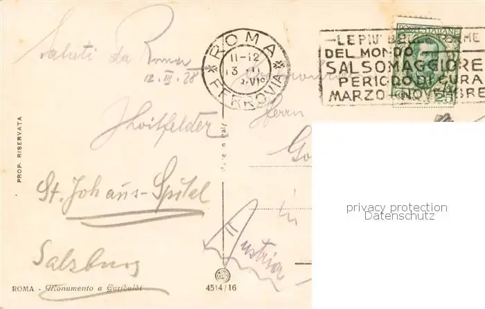 Roma__Rom_IT Monumento a Garibaldi postalisch gelaufen 1928 Erhaltung siehe scans [WerneD78] WernPID7