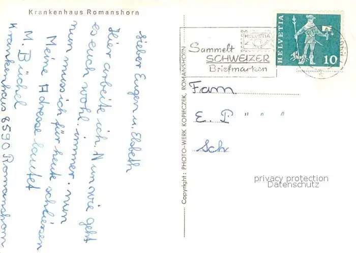 Romanshorn_Bodensee Krankenhaus Romanshorn Bodensee postalisch gelaufen 1921-1965 Erhaltung siehe scans [WerneD78] WernPID7