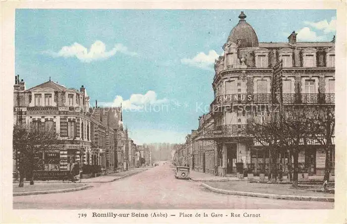 Romilly-sur-Seine_10_Aube Place de la Gare Rue Carnot postalisch nicht gelaufen 1921-1965 Erhaltung siehe scans [FriedD77] Frierer