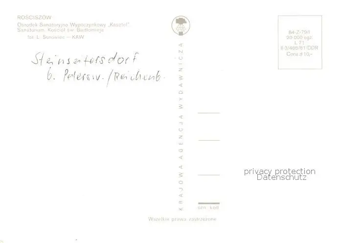 Rosciszow Kategorie Alte Ansichtskarten Postkarten kq77342 Rosciszow Sanatorium Kirche postalisch nicht gelaufen nach 1965 Erhaltung siehe scans [FriedD77]