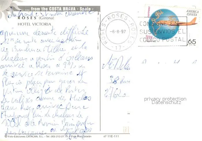 Roses_Costa_Brava Hotel Victoria Strand Roses_Costa_Brava postalisch gelaufen 1997 Erhaltung siehe scans [WerneD78] WernPID7