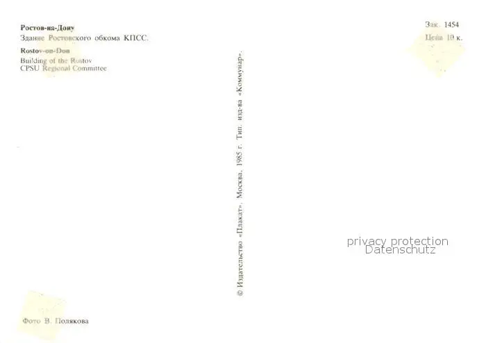 Rostov-On-Don Building CPSU Regional Commitee Rostov-On-Don postalisch nicht gelaufen nach 1965 Erhaltung siehe scans [Darjalle] Darjolle