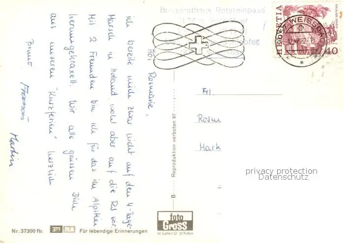 Rotsteinpass Altmann Rotsteinpass postalisch gelaufen 1982 Erhaltung siehe scans [KathaD81] Kathoren